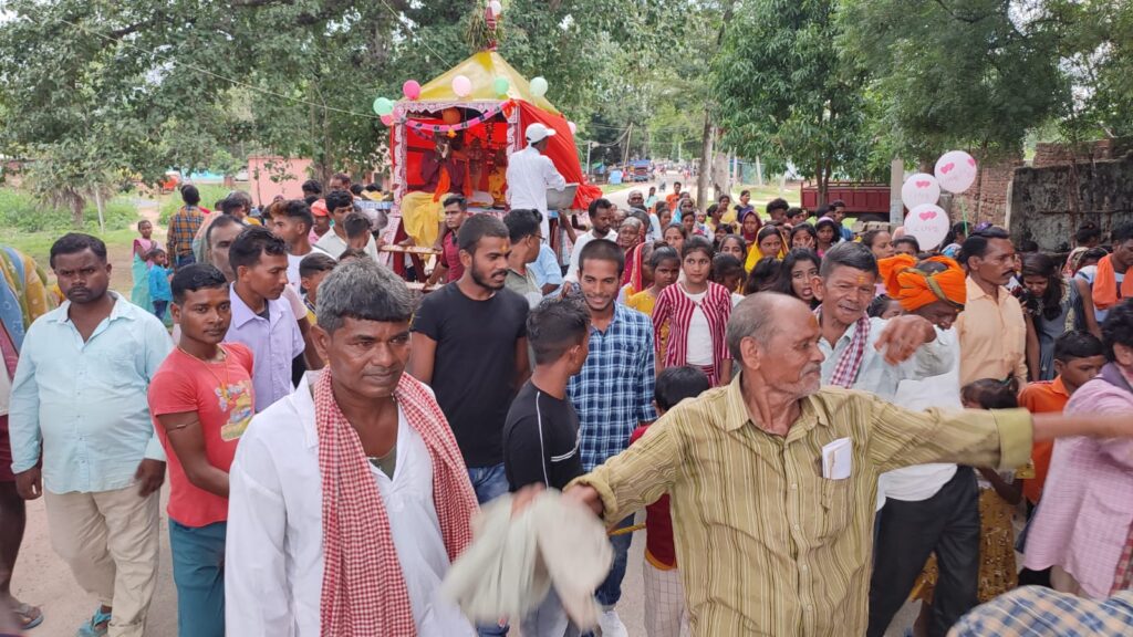 बोलबा :-बोलबा प्रखण्ड मुख्यालय में धूमधाम से घूरती रथ यात्रा वापस किया गया । इस मौके पर रथ मेला समिति के अध्यक्ष मोतीराम सेनापति ने बताया कि गत चतुर्थी तिथि को चलती रथ यात्रा निकाला गया था । जो नौ दिनों के लिए भगवान जगरनाथ स्वामी, भाई बलभद्र एवं बहन सुभद्रा को मौसी बाड़ी में छोड़ दिया गया था । पुनः भगवान के बिग्रहो को रथ पर बिठा कर यथा स्थान में विराजित किया गया । इस मौके पर बाजा-गाजा के साथ श्रद्धालुओं ने नाचते गाते एवं नारा लगाते हुए रथ को खींच कर लाया । इस मौके पर जगह-जगह रुक-रुककर प्रसाद वितरण किया गया । श्रद्धालुओं ने दर्शन कर आशीर्वाद लिया । इस मौके पर समिति के अध्यक्ष मोतीराम सेनापति, विरंजित प्रधान, विश्वा सिंह, पारश सिंह, भानुप्रताप सिंह, घूरन प्रधान, रंजीत शाह, रघुनंदन सिंह के अलावे अन्य लोगों की योगदान सराहनीय रहा ।